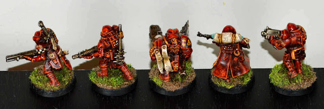 Some time ago I bought a box of 100 casino chips for a few euros only. They are solid, heavy and exactly 40mm in diameter, so perfect for bases. But who would need such bases in this army? Terminators! For sure I ain't going to include a bog standard unit of those elite troops, and wanted to build something different. The first idea was to do kind of elongated versions from the classic hunchback Warhammer Fantasy Chaos Warriors, basically by adding an extra torso and set of arms on top of the usual build. They could hold huge axes with two hands, and bolters on the other two. And classic 40k Terminator back banners should become a thing again.